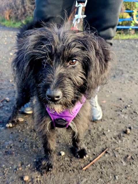 When out for a walk she is extremely excitable and both barks and spins on the lead. She is food motivated therefore we are confident that with a experienced owner who is committed to some hard work she will turn into a beautiful soul. At the moment she weighs around 13kg and although we would expect her to fill out a little we don't anticipate her growing much larger.