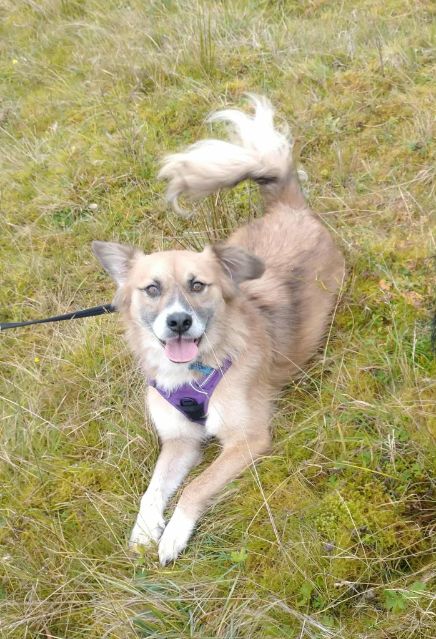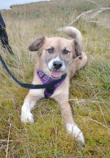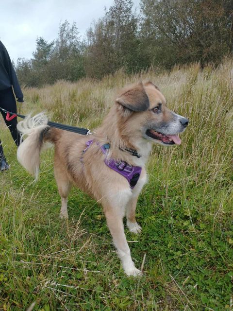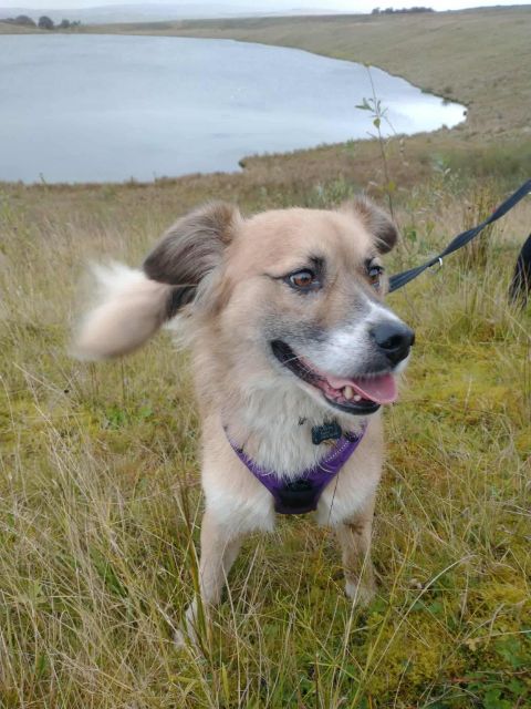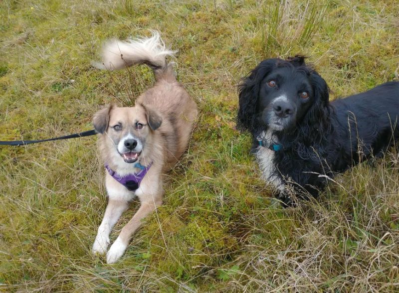 He walks very nicely on the lead and is happy to walk with or without other dogs. Initially Midge was terrified of traffic but he is gaining confidence daily.